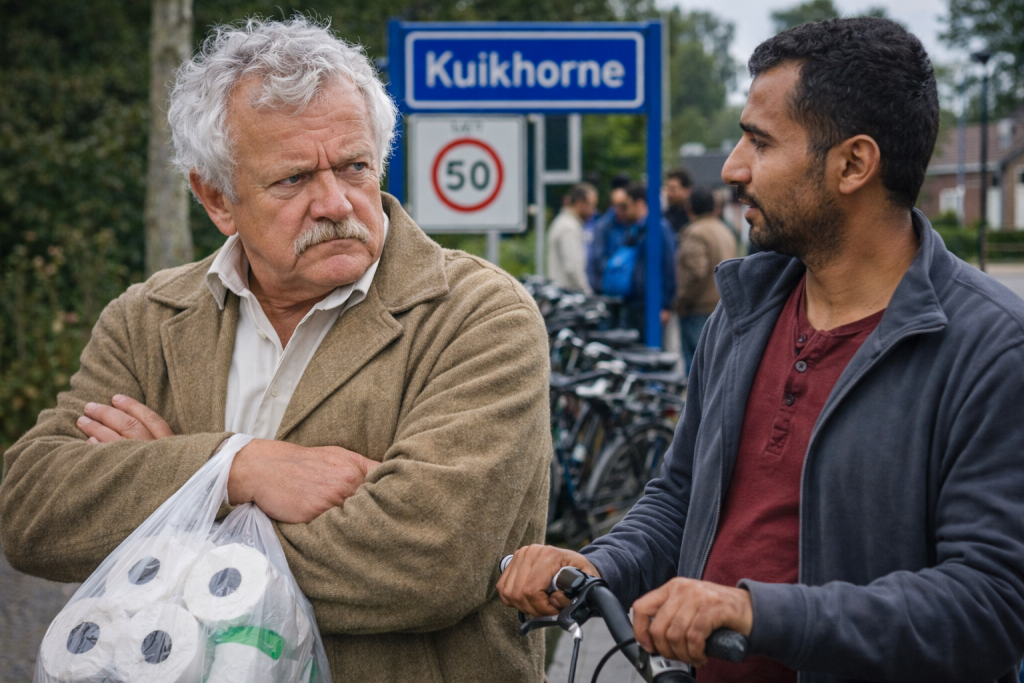 Ik stond dus van de week bij de supermarkt, gewoon even een pak melk en wat brood, niks geks, en ik hoor het al van een afstandje. Andere taal, andere klanken, en ik denk: dit klopt niet. Dit is Kuikhorne niet meer zoals ik het ken. “Wat is dit no wer,” zeg ik nog tegen mezelf.