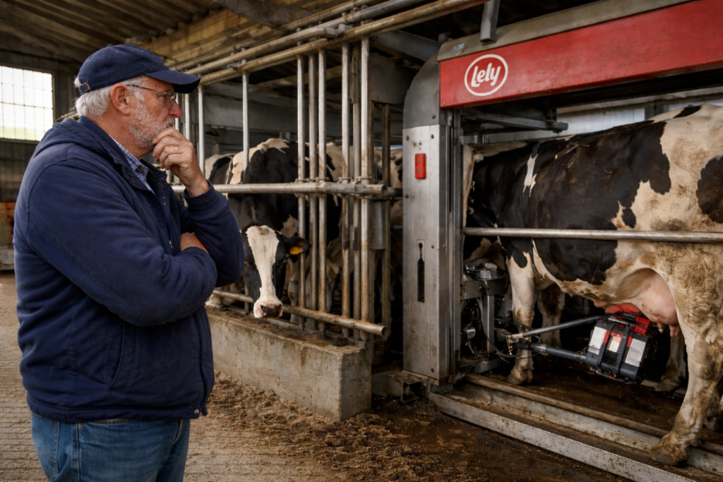Na tientallen jaren zelf melken heeft de boer besloten het werk over te laten aan robots. Niet omdat het niet meer ging, maar omdat het blijkbaar “zo hoort tegenwoordig”. En ergens klopt dat ook, want als iets jarenlang goed werkte, is het natuurlijk hoog tijd om het volledig te automatiseren.